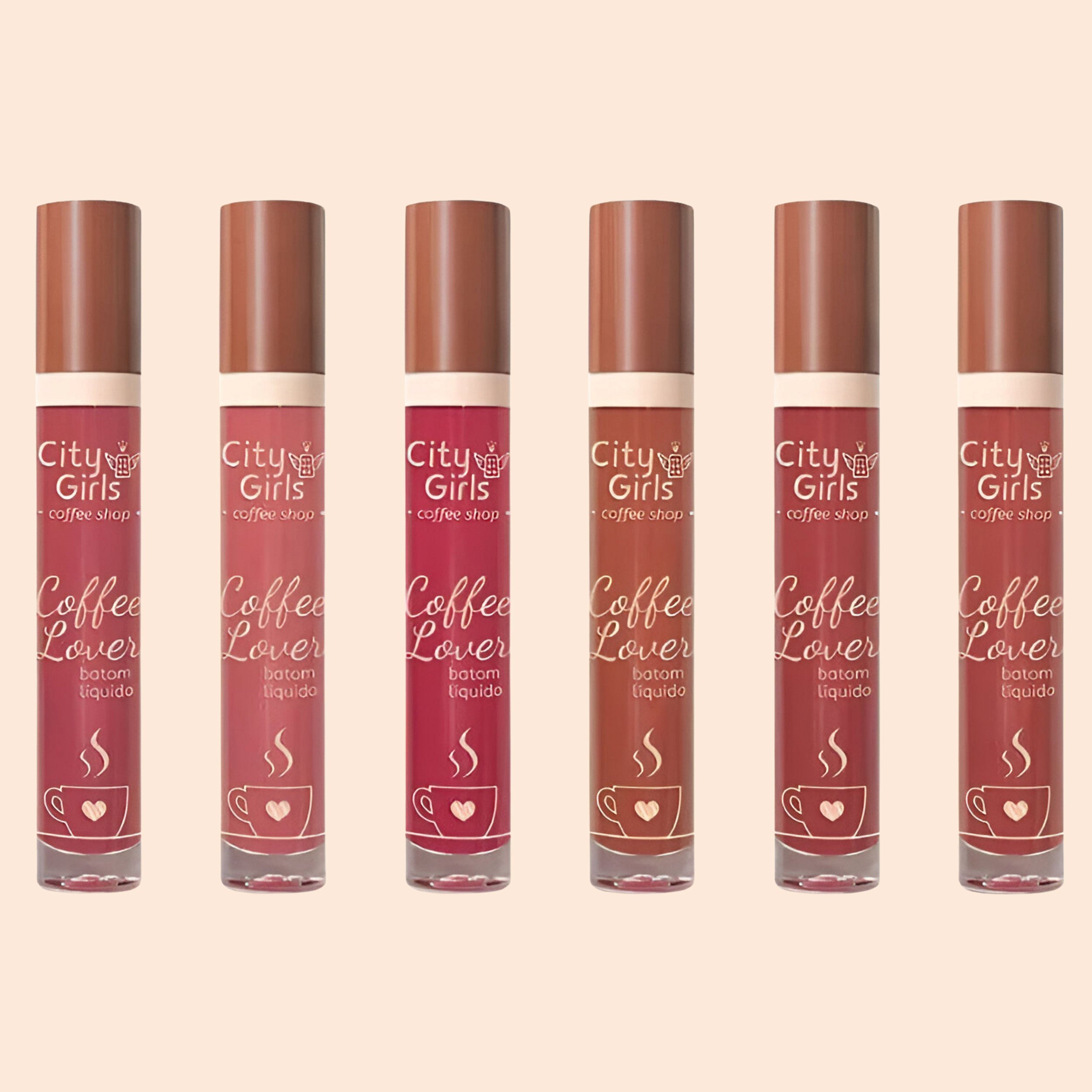 Desperte sua paixão pelo Batom Líquido Coffee Lover da City Girls. Esta coleção exclusiva apresenta seis tons irresistíveis inspirados nas nuances ricas e envolventes do café.