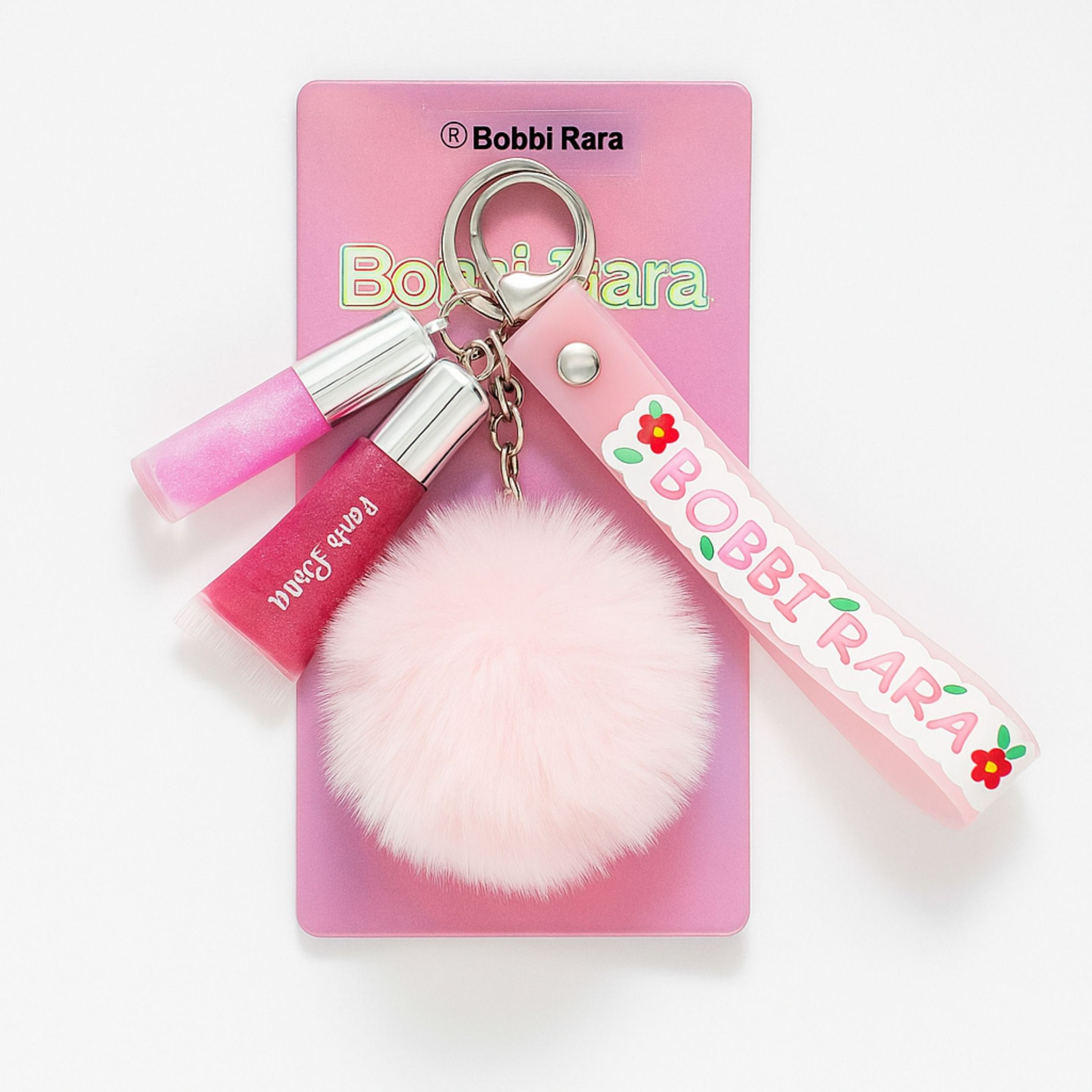 A alça personalizada Bobbi Rará deixa tudo ainda mais estiloso, e o pompom rosa traz o toque de fofura que transforma o acessório em um item indispensável para a bolsa, mochila ou estojo. Perfeito para quem ama estar sempre pronta, com muito charme e brilho!
