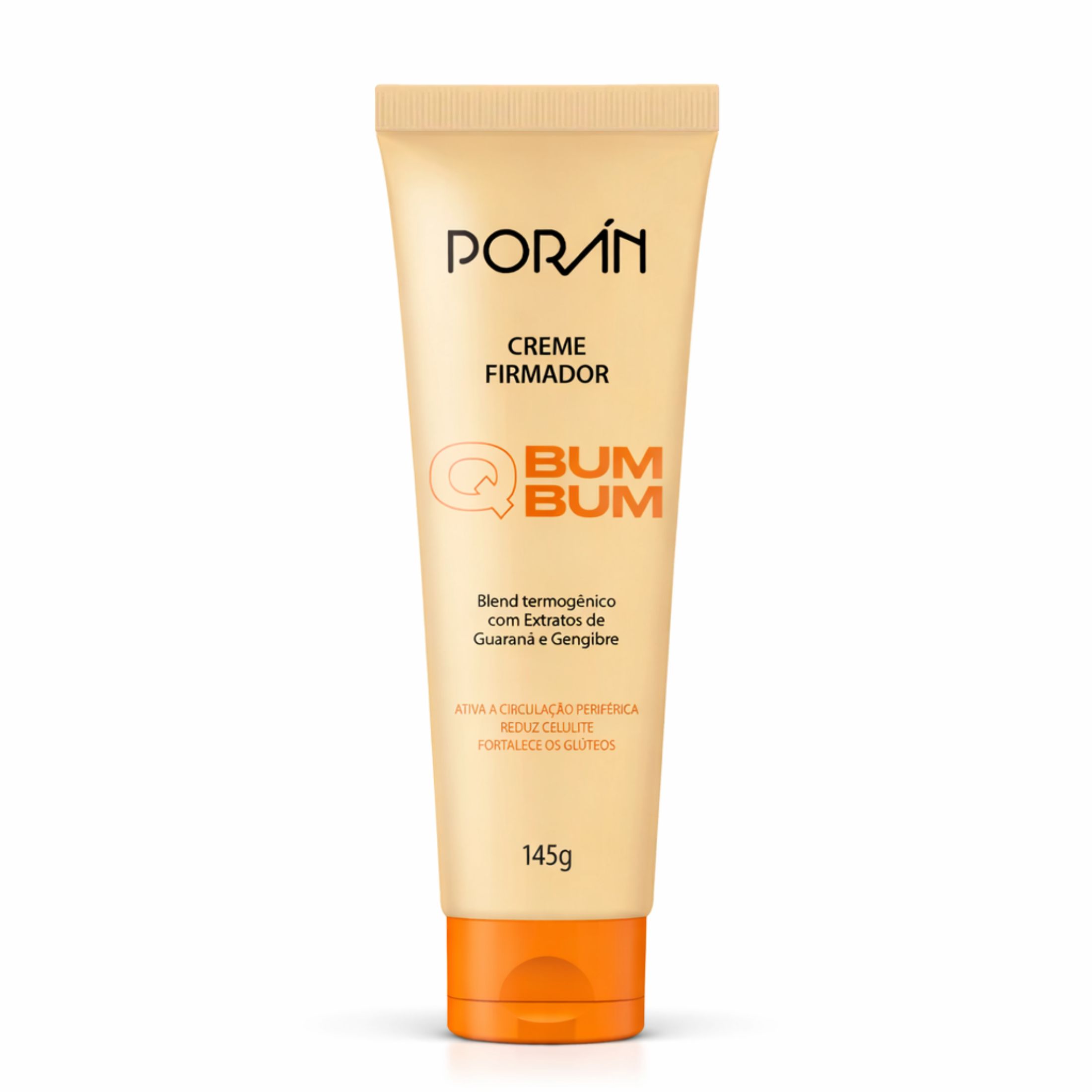 O Creme Firmador Q Bum Bum Porán 145g é um creme para a região dos glúteos que promete deixar a pele mais firme e tonificada, além de prevenir e combater celulite e foliculite. Sua fórmula contém ingredientes como guaraná e gengibre para uma ação termogênica e de ativação da circulação, e é descrito como having a suave e agradável fragrância.