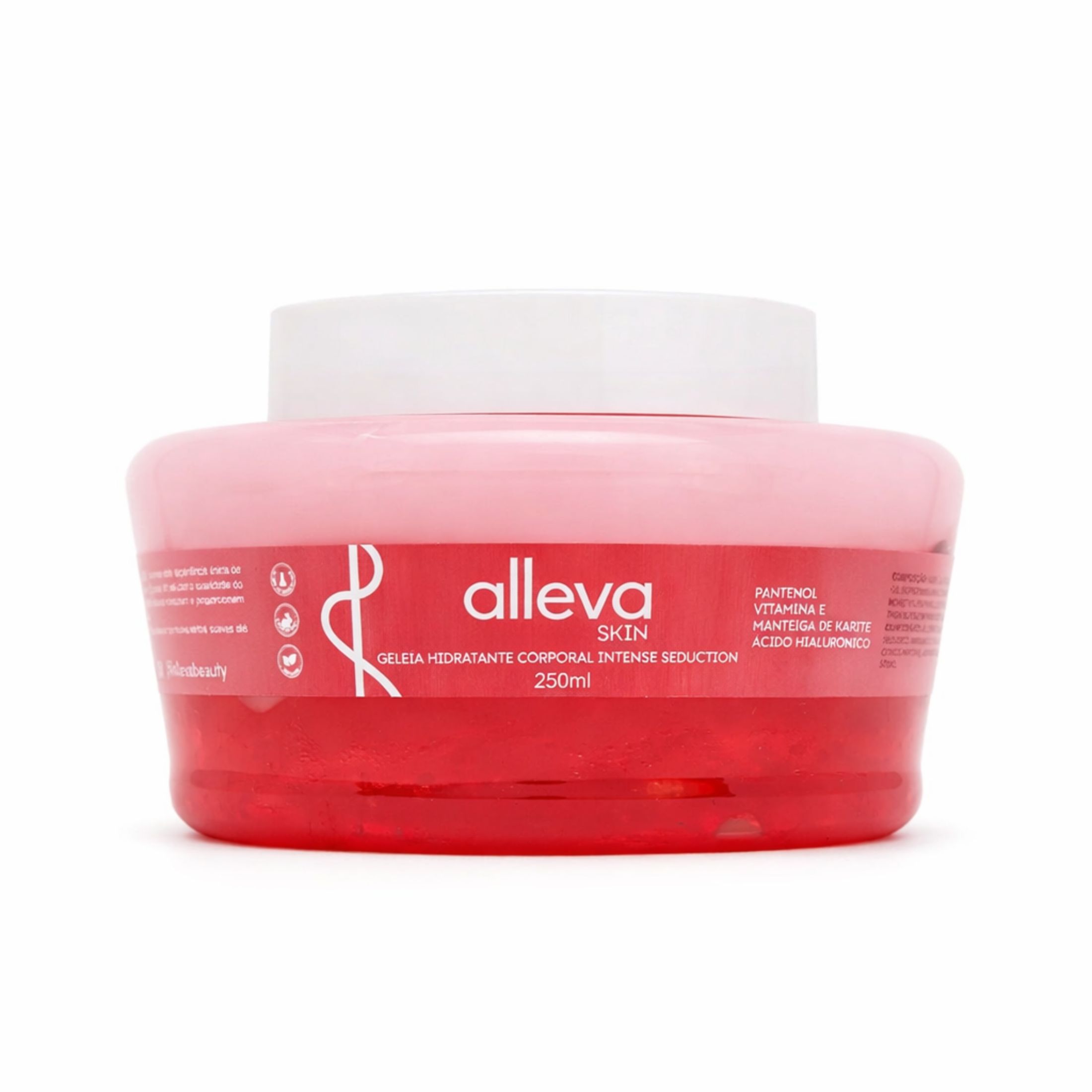 Geleia hidratante corporal da alleva skin oferece uma experiência única de hidratação. Sua textura bifásica combina o frescor do gel com a suavidade do creme, criando uma fusão perfeita. As texturas se misturam e proporcionam uma sensação deliciosa na pele.