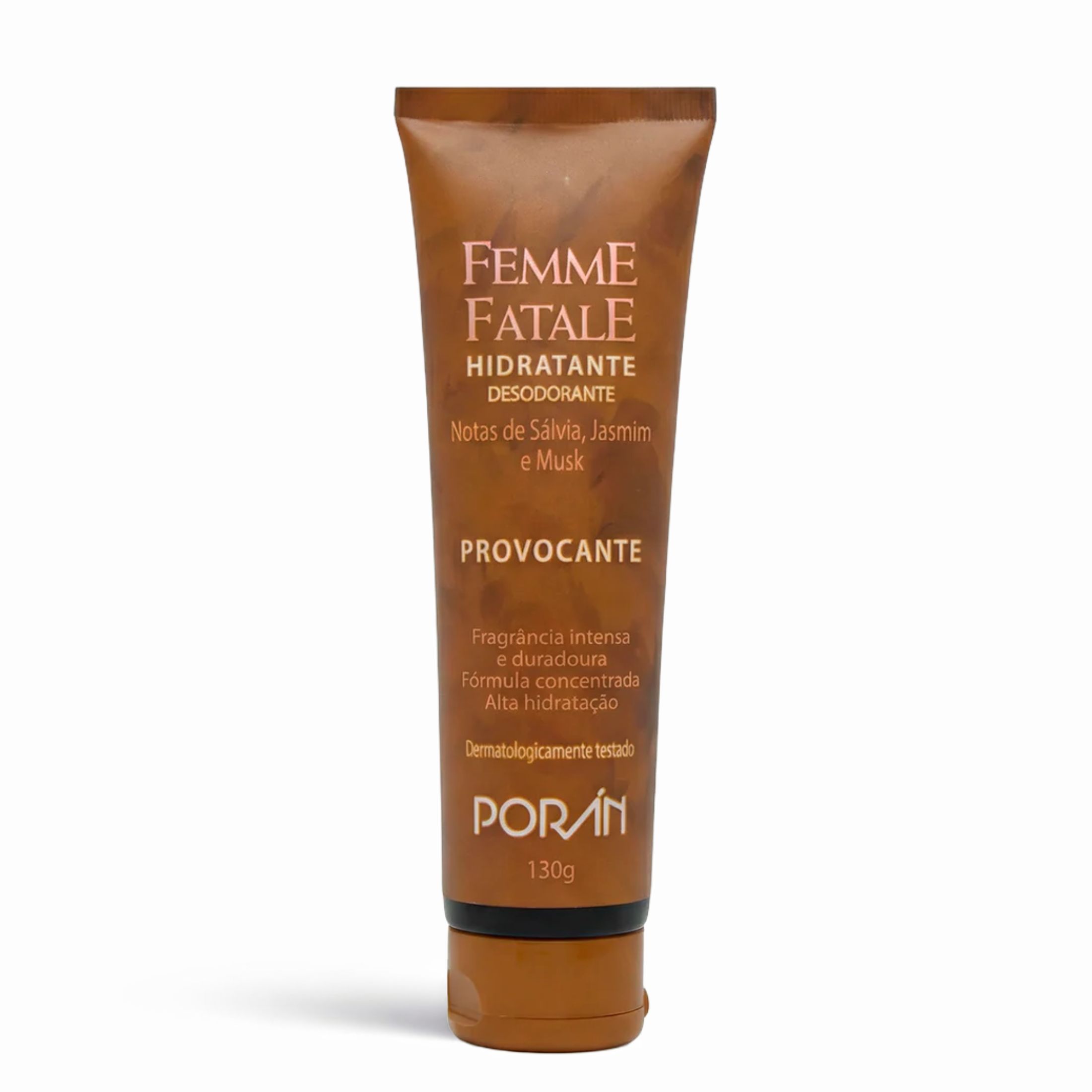 O hidratante provocante da linha femme fatale porán traduz ousadia e sofisticação em uma fragrância cativante. Entrega um perfume marcante, moderno e sensual perfeito para quem deixa um rastro de presença por onde passa.
