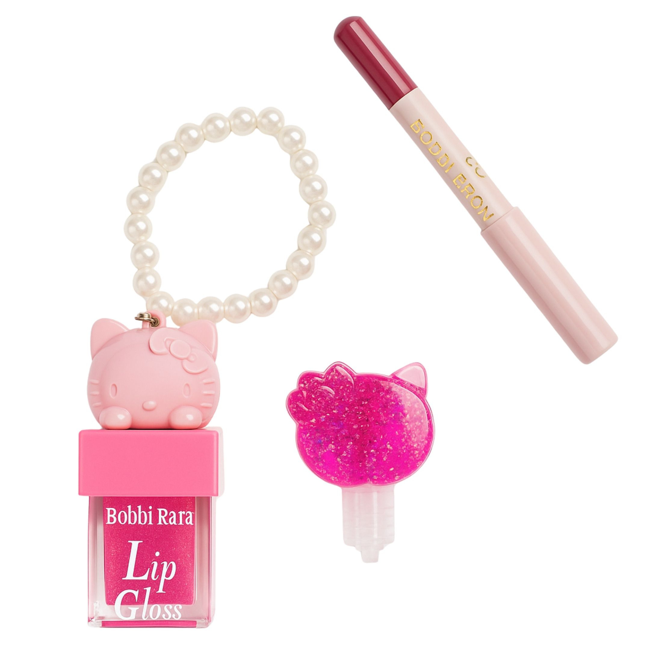 Ele vem com um lip gloss rosa brilhante em embalagem temática com chaveiro de pérolas, perfeito para levar em qualquer lugar, além de um aplicador extra em formato de gatinho que deixa tudo ainda mais divertido. Para finalizar o look, o kit acompanha um lápis labial cremoso e pigmentado, ideal para dar cor, definição e aquele toque sofisticado aos lábios.