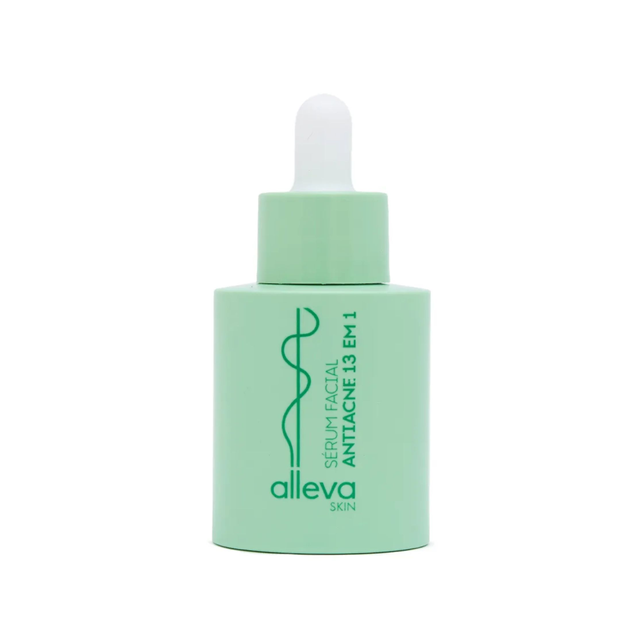 O Sérum Facial Vegano Antiacne 13 em 1 Alleva Skin é uma fórmula poderosa que combina ingredientes naturais para tratar a acne e promover a saúde da pele. Com ácido salicílico, água bioativa de melaleuca, niacinamida e extratos de plantas como aloe vera, chá verde, camomila e menta, ele combate a inflamação, hidrata e acalma a pele, deixando-a mais saudável e equilibrada. Ideal para peles propensas à acne, este sérum oferece ação antibacteriana e antioxidante, proporcionando um cuidado completo para o seu rosto.