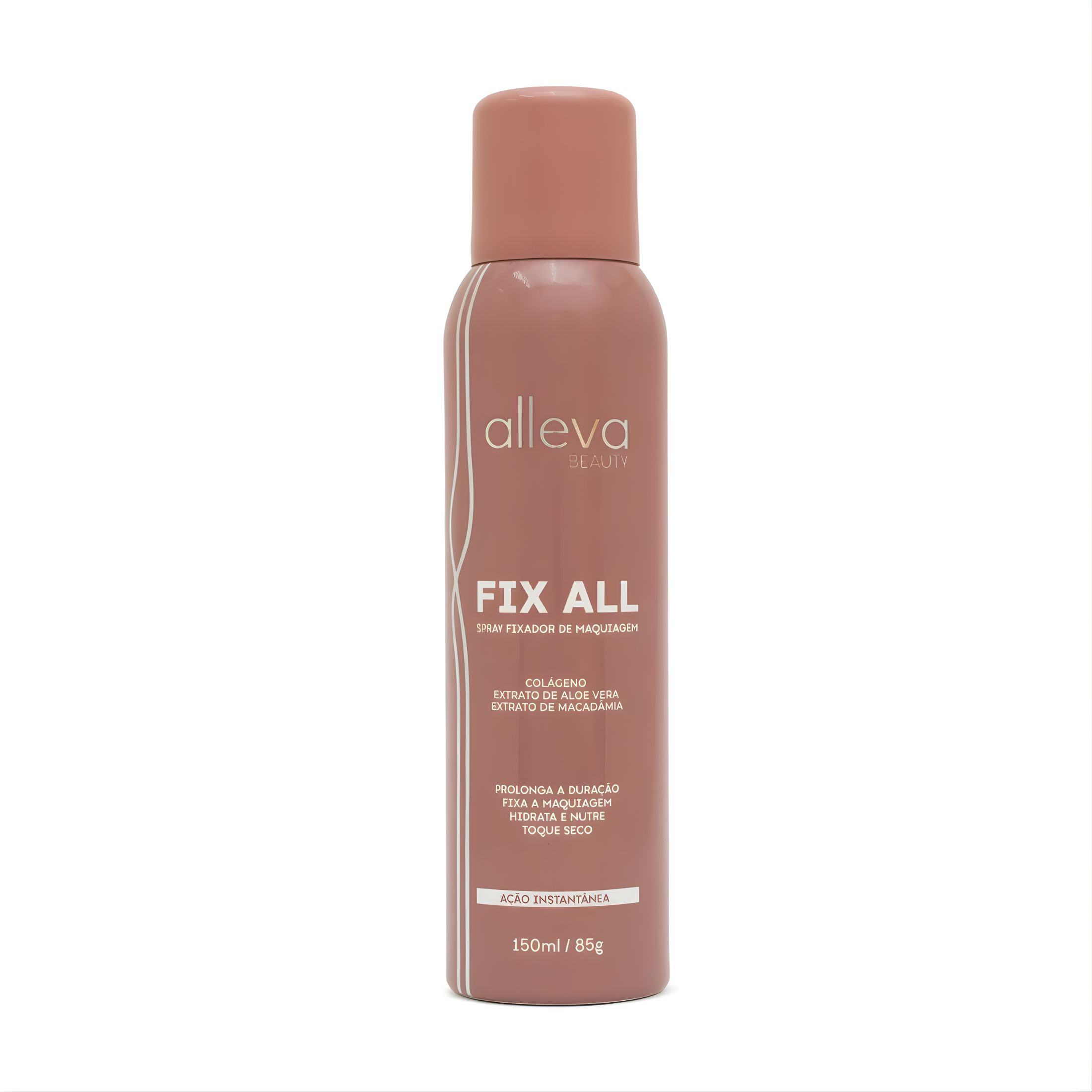 O spray fixador de maquiagem fix all da alleva beauty possui uma tecnologia inteligente que é o equilíbrio perfeito entre durabilidade e cuidado com a pele. sua fórmula enriquecida com colágeno, extrato de aloe e de macadâmia reforça a barreira natural da pele, ajudando assim, hidratação e nutrição, ideal para todos os tipos de pele, ele possui toque seco formando uma camada leve e cpnfortável que prolonga e fixa a maquiagem o longo do dia enquanto proporcions viço natural.